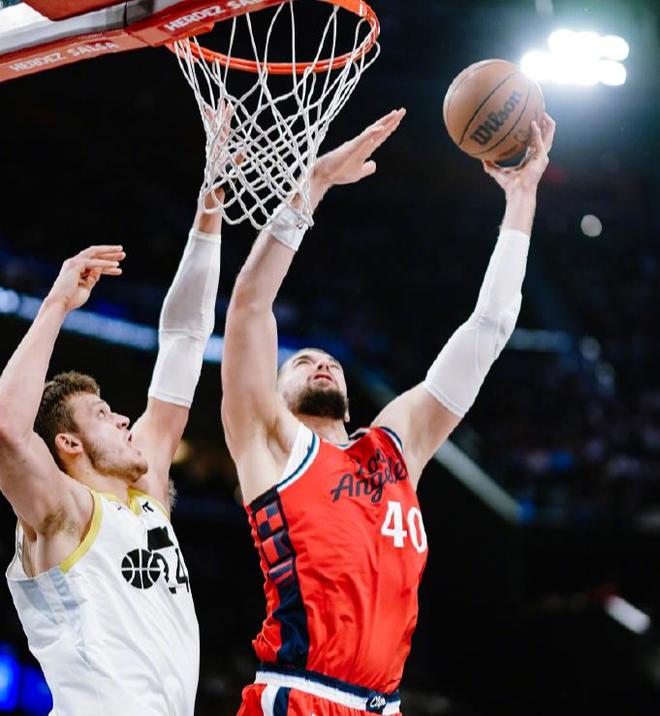 第二節(jié)比賽大洛外線連續(xù)命中三分球,快船進(jìn)攻稍微有點(diǎn)起色,哈登兩罰一中將比分追到33-52,分差回到20分以內(nèi)。大洛三分不中鄧恩有前場籃板,但是哈登空位三分沒能把握住,防守端大洛背后下手犯規(guī)了,爵士繼續(xù)進(jìn)攻,菲利波夫斯基底角三分續(xù)上火力,爵士隊(duì)打得真不錯。倫納德?lián)寯嘀ス欠磽羯匣@,馬爾卡寧三分線外單打小卡得分,祖巴茨內(nèi)線虐框,亨德里克斯也有,爵士全開了,快船誰也防不住。打到目前泰倫盧的用人調(diào)配太死板了,開局階段就應(yīng)該果斷調(diào)整陣容,攻防兩端都被爵士三高打爆了,暫停過后還是沒有任何換人調(diào)整,硬生生將爵士全隊(duì)狀態(tài)養(yǎng)了起來。