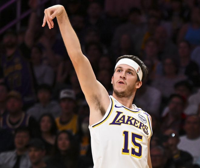 第三節(jié)拉拉維亞成為奇兵,單節(jié)6中5轟14分,湖人攻防壓制對(duì)手,打出12-0高潮將分差拉至20分。森林狼末段回勇,迪林厄姆與海蘭德連中三分縮小差距,三節(jié)戰(zhàn)罷湖人97-86領(lǐng)先。第四節(jié)湖人隊(duì)突然進(jìn)攻斷電,森林狼掀起反擊,蘭德?tīng)柫P球與麥克丹尼爾斯扣籃聯(lián)手打出9-0攻勢(shì)反超比分。終場(chǎng)前10秒,里夫斯接邊線(xiàn)球后突破拋投壓哨絕殺,湖人116-115險(xiǎn)勝。